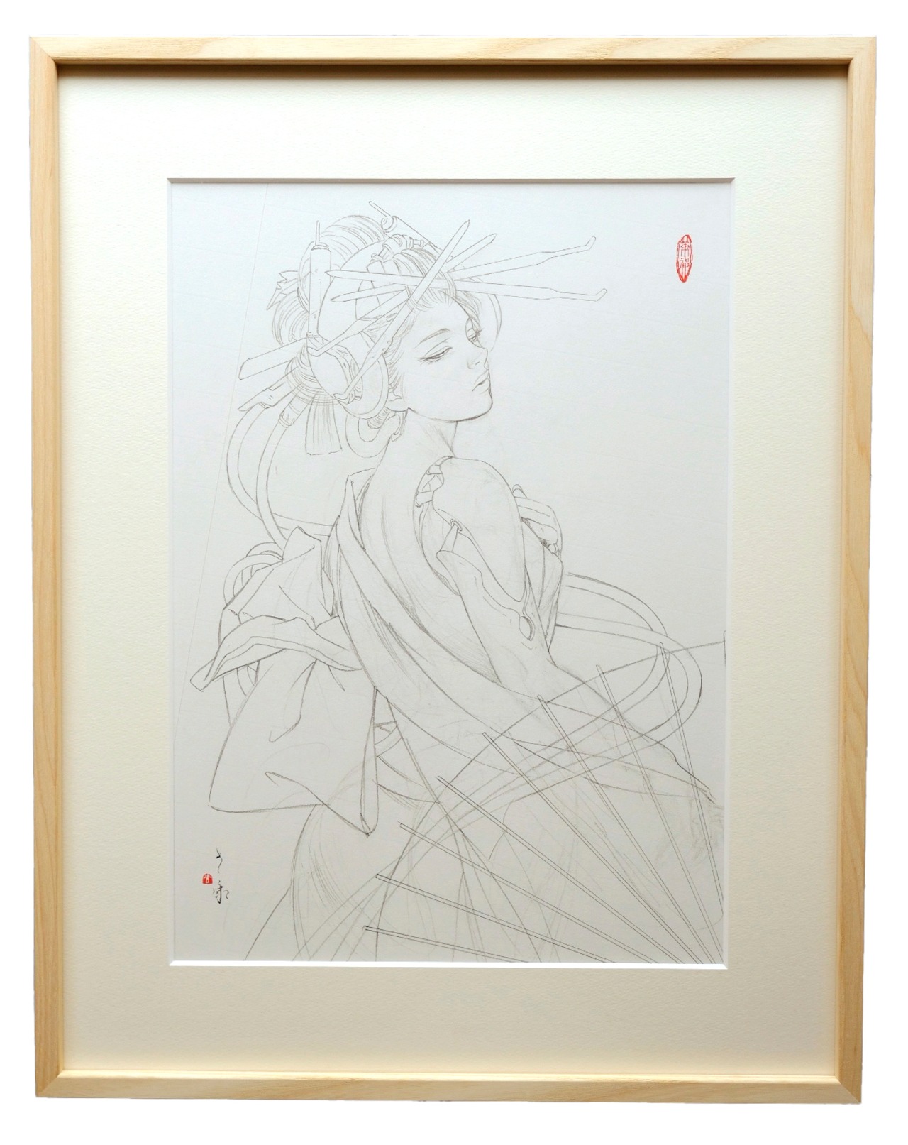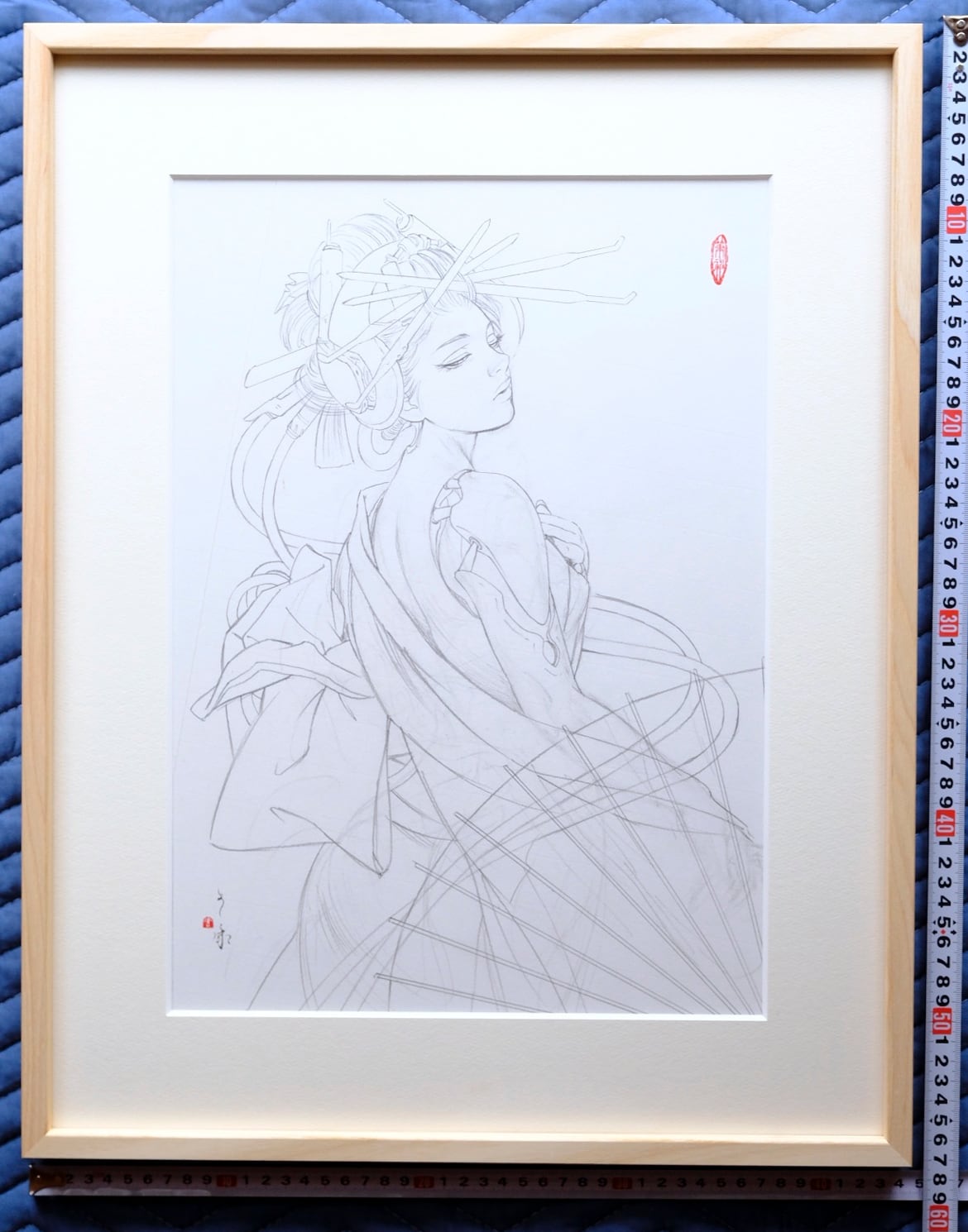 制作中も実際にリファレンス、雛形として使用していた下絵ですので汚れ、スレ、一部破れなどある場合があります。裏打ちによる補強以外はそのまま額装し販売します