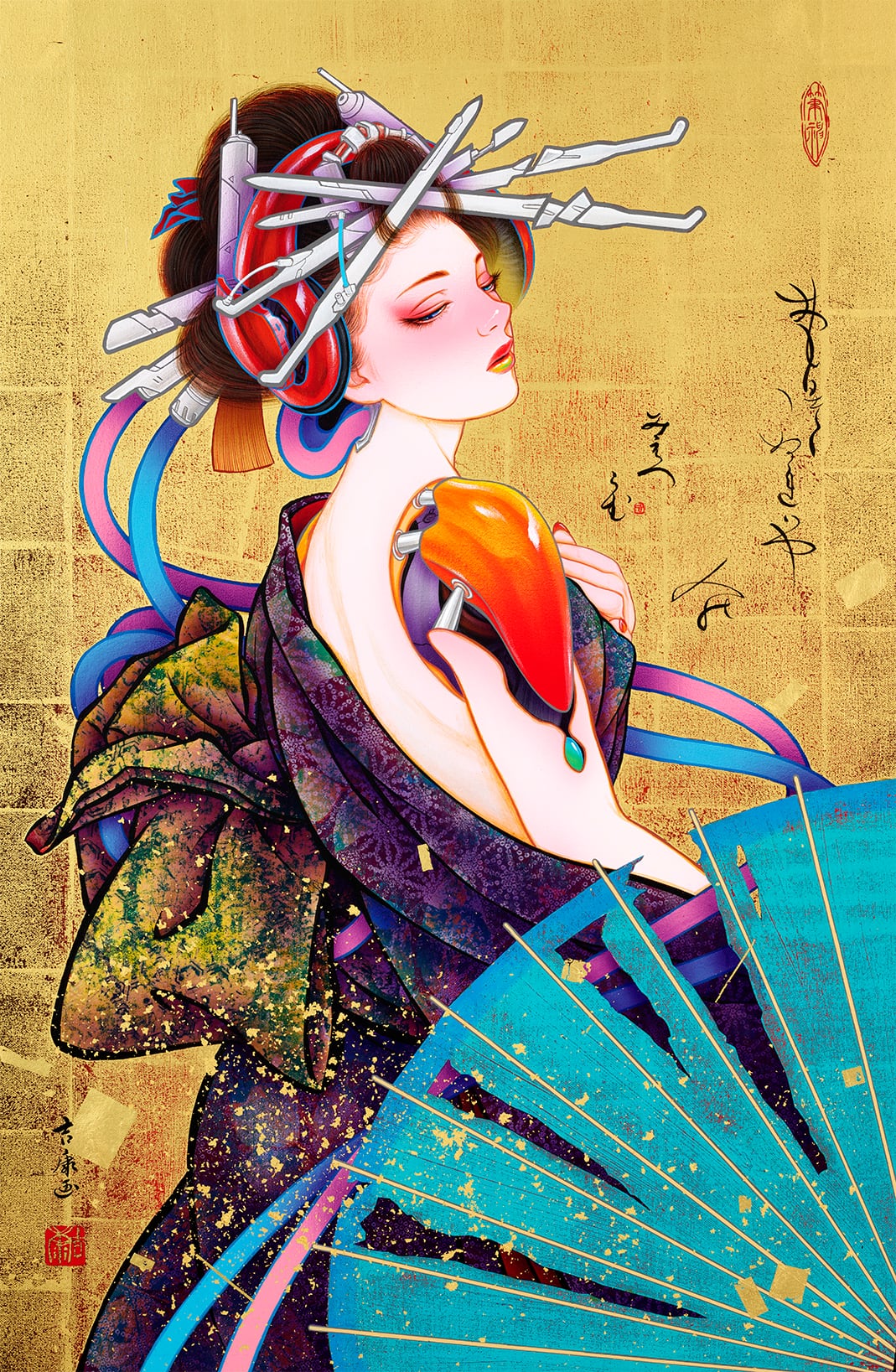 人気モデル、ツナマヨさんに日本で和装でポーズしていただいて制作しました。